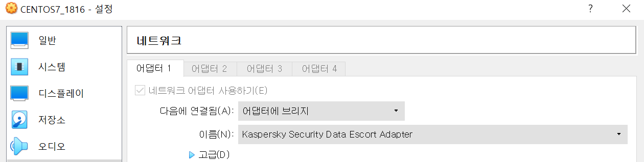 1) 기본 network adapter를 설정합니다.