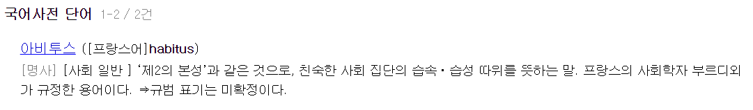 이런 의미이고.. 사회에서 구분되는 계층마다 그 계층에 해당하는 아비투스라는 것이 있다.