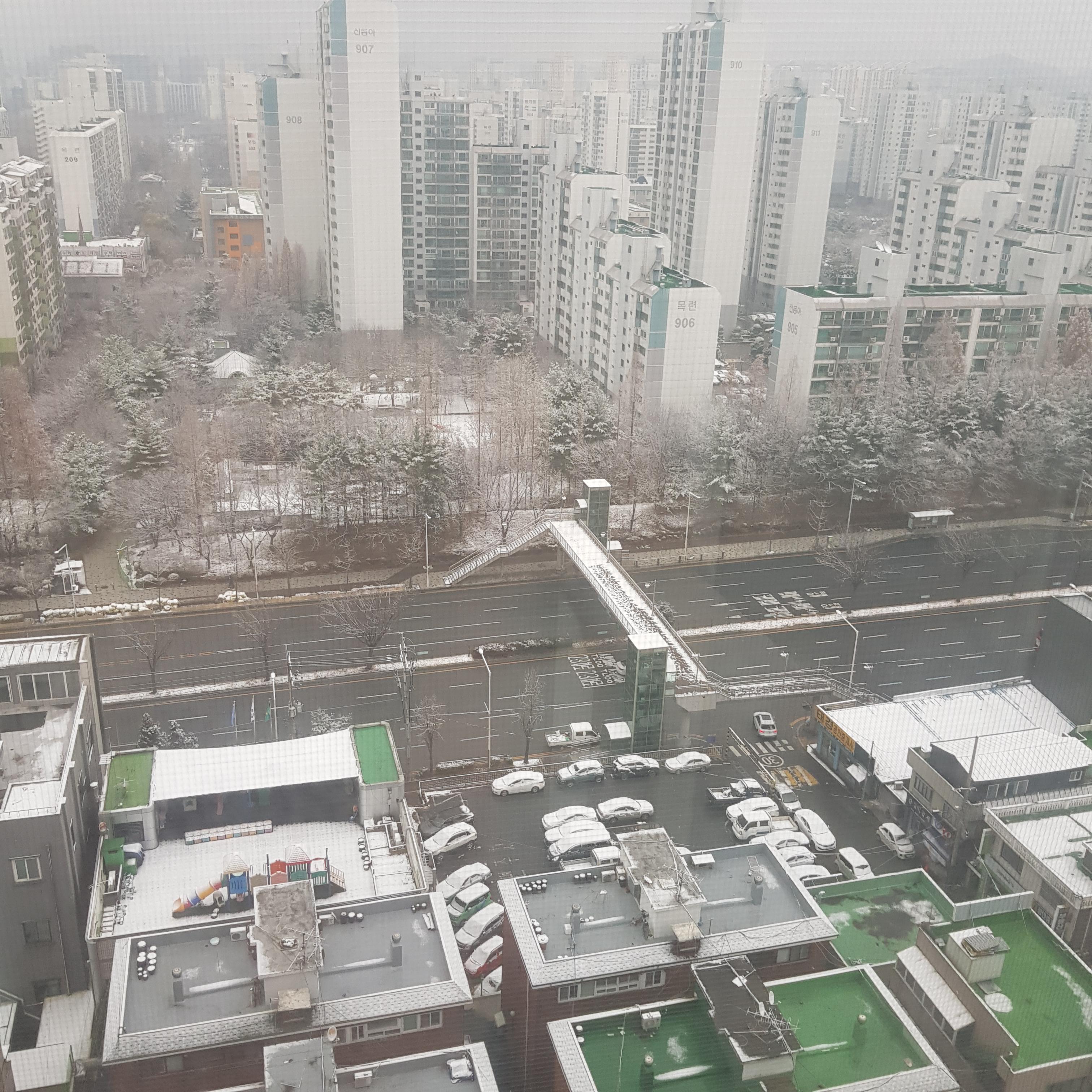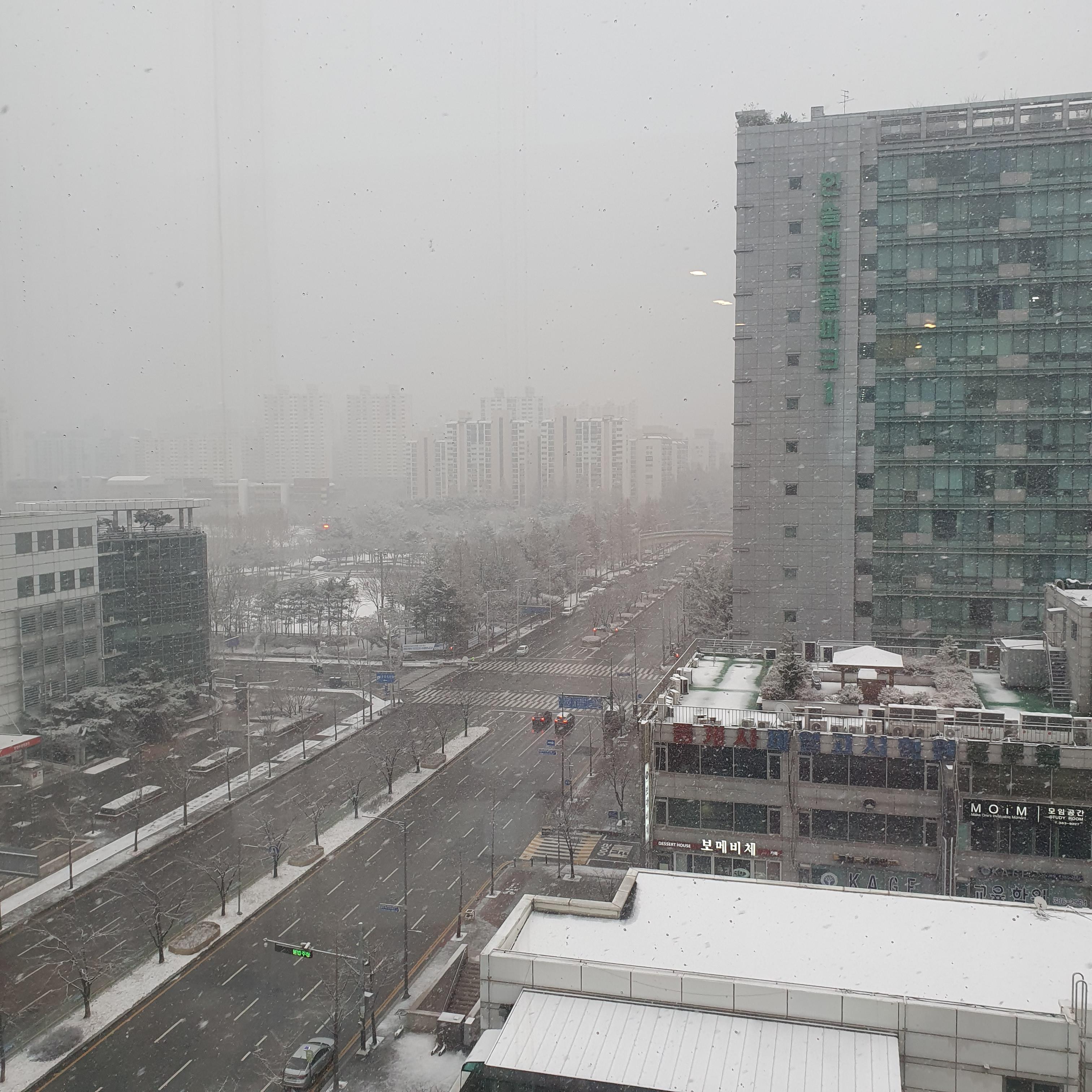 It snowed heavily last night, this is the first snow of the season.